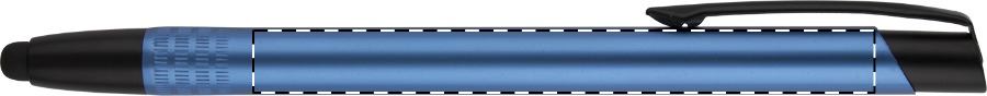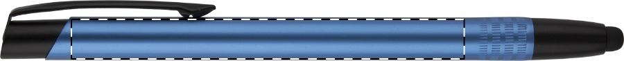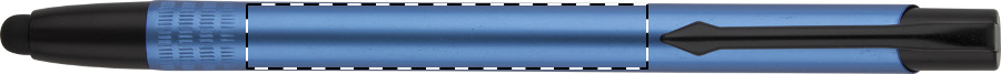 Penna a sfera in alluminio anodizzato, con gommino capacitivo e refill blu.