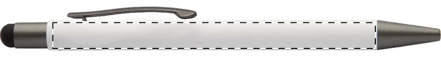 Penna a sfera in alluminio con finitura gommata, gommino capacitivo e refill blu.