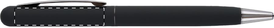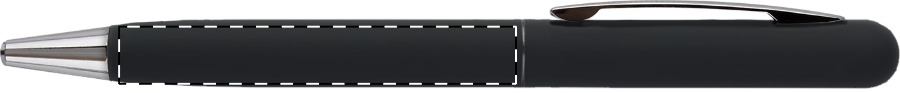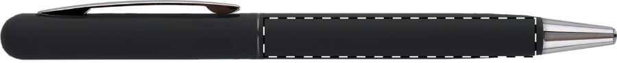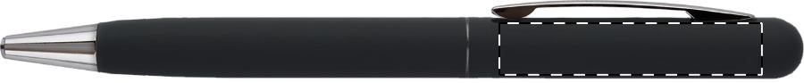 Penna a sfera in metallo con meccanismo a rotazione, finitura gommata e refill blu. Rivestimento speciale per incisione laser a specchio.