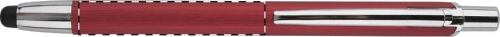 Penna a sfera in alluminio spazzolato con gommino capacitivo per touch screen e refill blu.