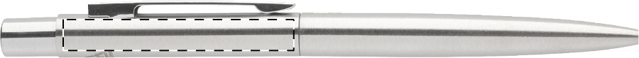 Penna a sfera in acciaio riciclato con dettagli cromati e refill blu.