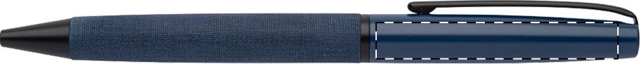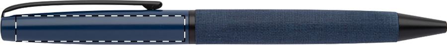 Elegante penna a sfera in metallo con meccanismo a rotazione, refill blu, fusto rivestito in pelle PU e parti nere. In confezione regalo nera.