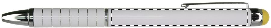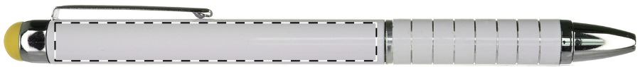 Penna a sfera in alluminio, corpo bianco, gommino capacitivo per touch screen colorato e refill blu.