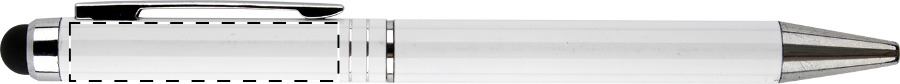 Penna a sfera in alluminio con gommino capacitivo e refill blu.