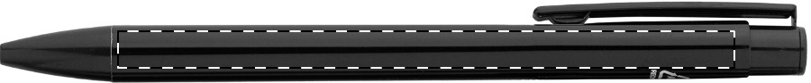 Penna a sfera in alluminio riciclato con finitura metallica lucida e refill blu.