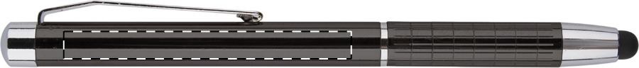 Penna a sfera in metallo con touch screen con impugnatura fresato. Con refill blu.
