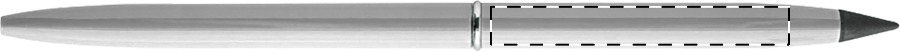 2in1, penna a sfera con meccanismo a rotazione in alluminio riciclato e penna senza inchiostro. Con refill blu e punta in lega metallica che ossida la carta. Questa penna scrive come una matita ed è anche cancellabile.