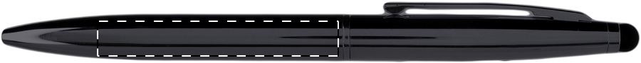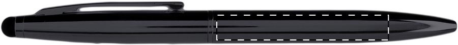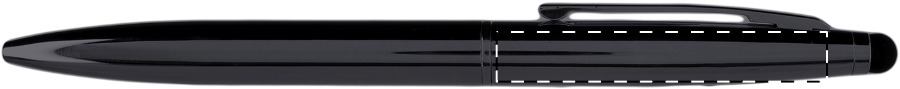 Penna a sfera in metallo con refill blu, finitura lucida e gommino capacitivo.