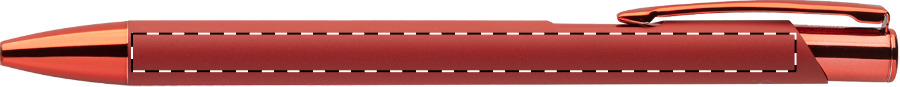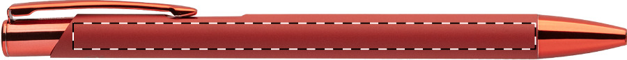 Penna a sfera in alluminio riciclato con corpo gommato, parti colorate con finitura metallica lucida e refill blu. Lo speciale rivestimento permette l'incisione a specchio in colore coordinato delle parti metalliche.