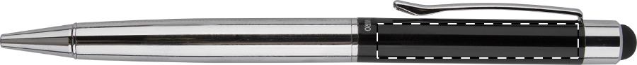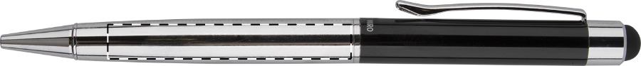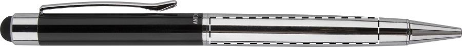 Penna a sfera in metallo con gommino capacitivo e corpo lucido, in confezione regalo. Prodotto a marchio Antonio Miro.