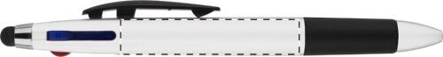 Penna a sfera in plastica con gommino capacitivo per touch screen ed impugnatura in gomma, finitura opaca metallizzata. Con 3 refill: nero, blu e rosso.