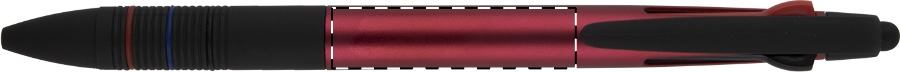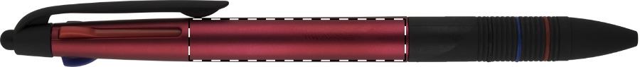 Penna a sfera in plastica con gommino capacitivo, impugnatura in gomma e corpo con finitura opaca metallizzata. Con 3 refill: nero, blu, rosso.