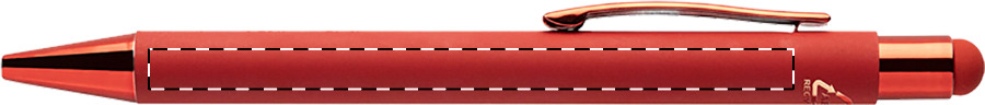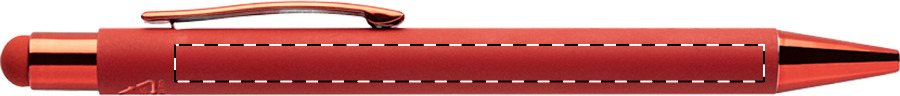 Penna a sfera capacitiva in alluminio riciclato con refill blu, fusto gommato e parti con finitura colorata metallizzata lucida. Lo speciale rivestimento permette l'incisione a specchio coordinata con le parti metalliche.