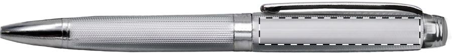 Elegante set composto da una penna a sfera ed una penna roller in metallo con fusto decorato. In confezione regalo nera e refill blu. Prodotto a marchio André Philippe.