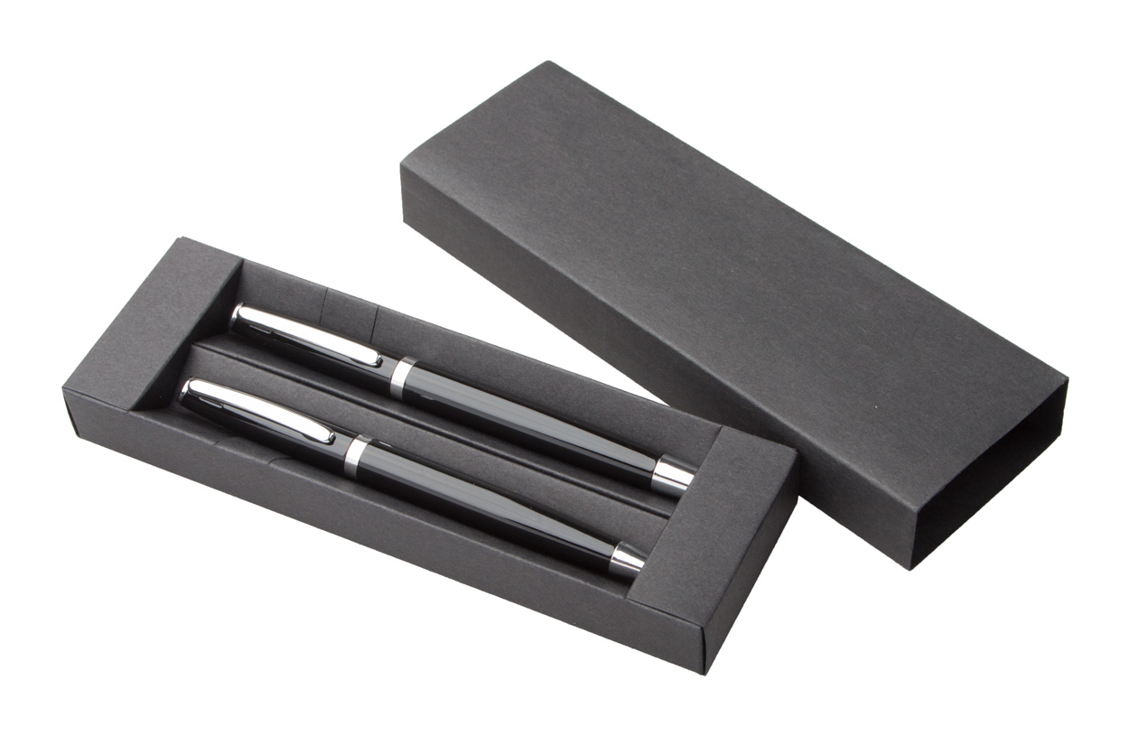 Set penna a sfera e penna roller in alluminio. Fornito con refill blu e confezione regalo.