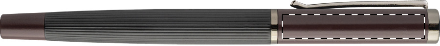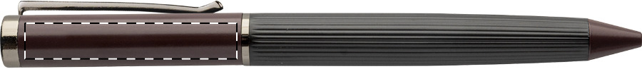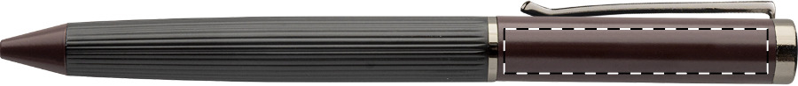 Elegante set composto da penna a sfera e penna roller in metallo con fusto a righe, inserti colorati, dettagli in tonalità canna di fucile e refill blu. Set fornito in confezione regalo in colore coordinato. Prodotto a marchio André Philippe.