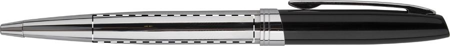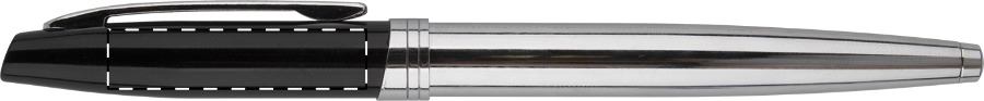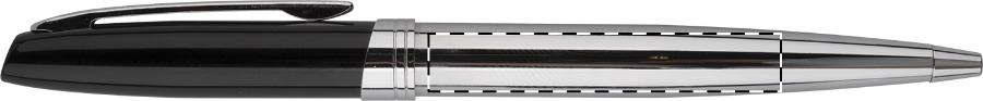 Set penna a sfera in metallo e penna roller con parte superiore in colore nero laccato e corpo cromato lucido e clip. In confezione regalo, con refill blu.