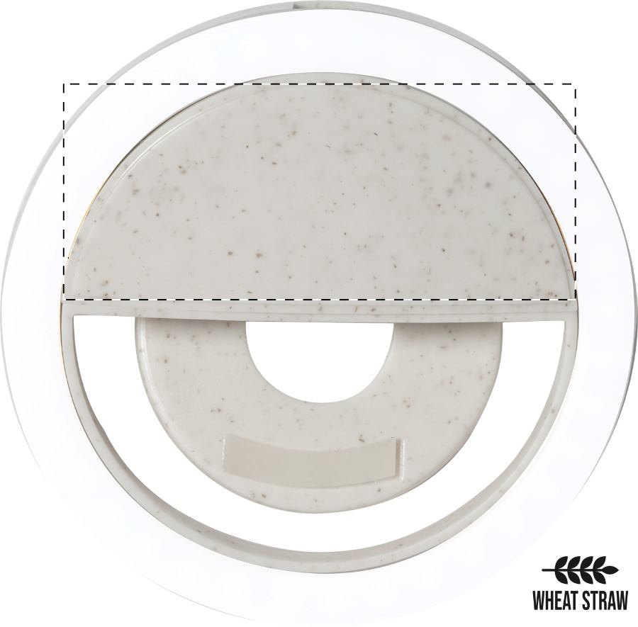 Luce anulare da selfie per telefoni cellulari, in plastica ecologica di paglia di grano con batteria ricaricabile integrata, 36 LED e 3 livelli di luminosità regolabili. Cavo di ricarica USB incluso.