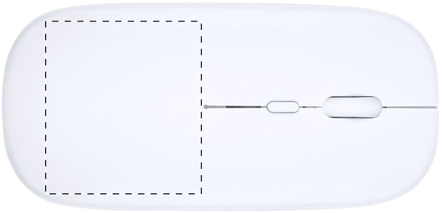 Mouse ottico wireless con scocca in ABS riciclato e batteria ricaricabile integrata. Fornito con cavo USB per la ricarica.