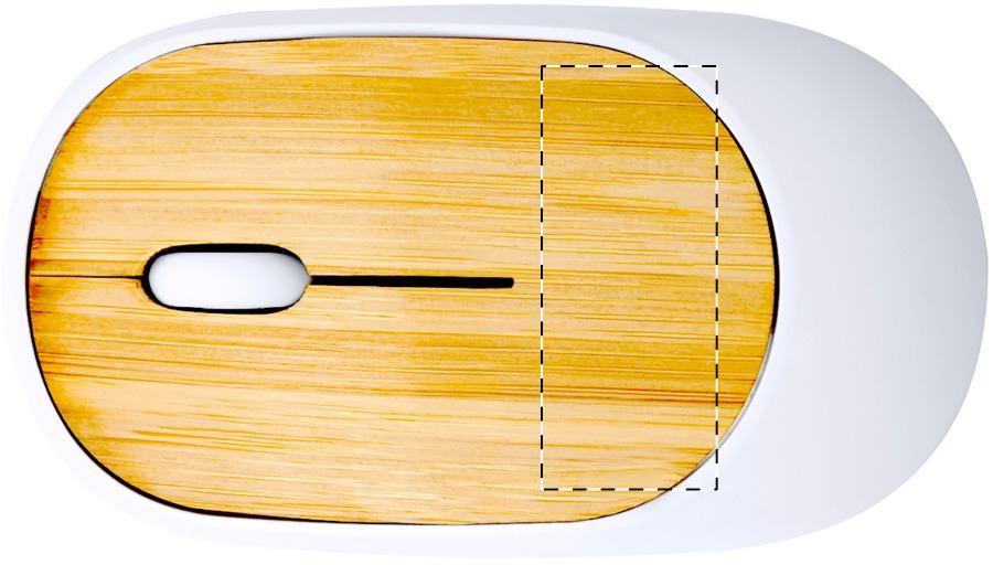 Mouse ottico wireless con struttura in bambù e ABS. Funziona con 1 batteria AA, non inclusa.