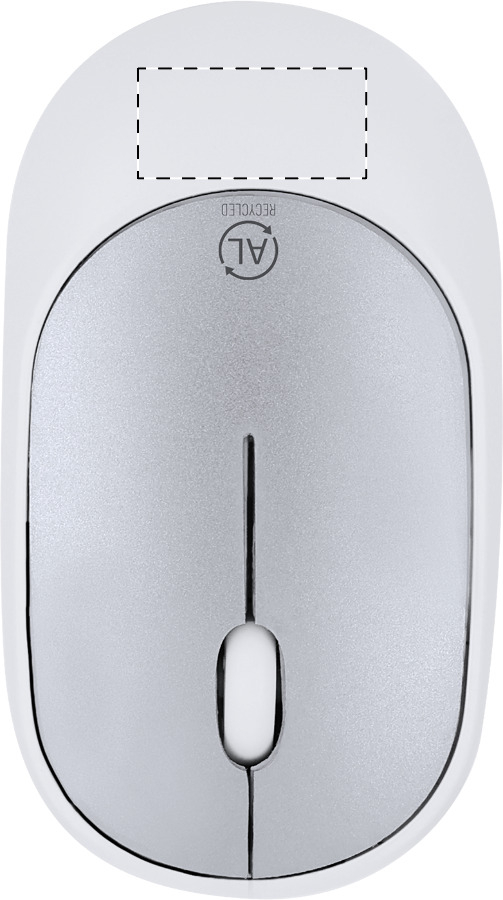 Mouse ottico wireless in plastica ABS riciclata e alluminio riciclato. Funziona con una batteria 1AA, non fornita.