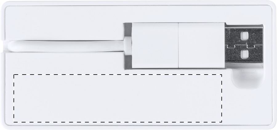 Hub USB2.0 in plastica ABS riciclata con 2 porte USB, 1 porta USB-C e cavo con connessioni USB e USB-C.