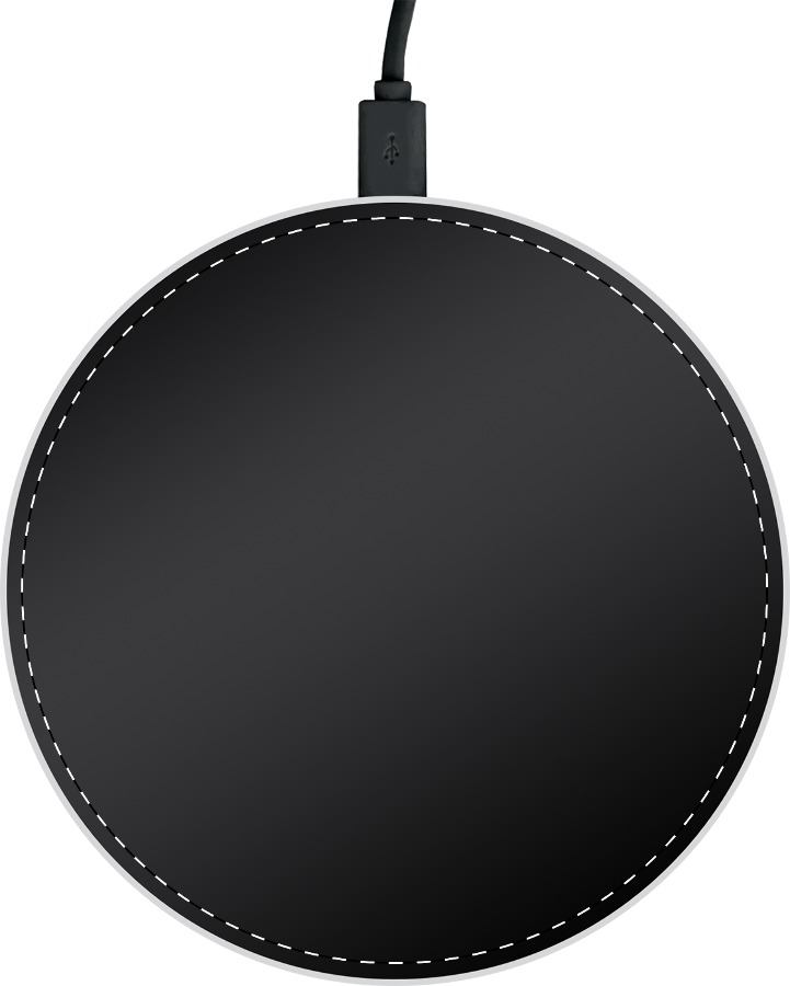 Caricatore wireless (5W) in plastica per cellulare, luce LED interna in grado di illuminare la personalizzazione ad incisione. Cavo di ricarica USB incluso.