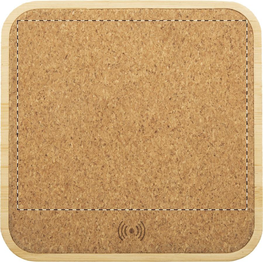 Caricatore rapido wireless (15W) in bambù e sughero naturale, con cavo di ricarica USB incluso.