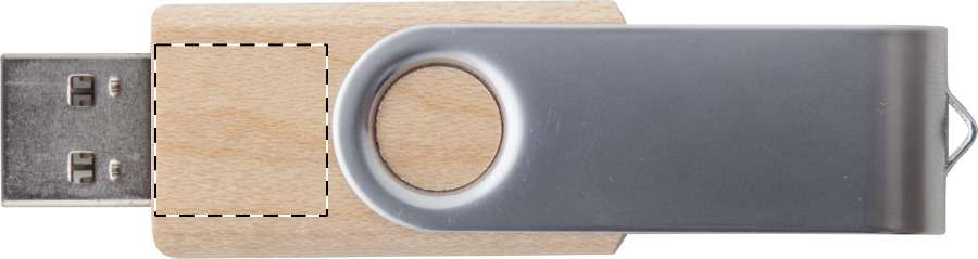 Chiavetta USB2.0 twist OTG in bambù e metallo con memoria da 4/8/16/32 GB. Connessioni USB e USB-C, confezionata in scatola di cartoncino kraft.