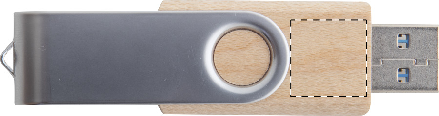 Chiavetta USB2.0 twist OTG in bambù e metallo con memoria da 8/16/32 GB. Connessioni USB e USB-C, confezionata in scatola di cartoncino kraft.