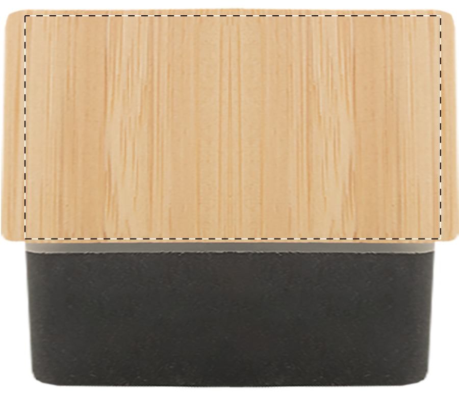 Altoparlante wireless in involucro di bambù con parte inferiore in gomma e batteria ricaricabile integrata. Con funzione di lettore micro SD. Cavo di ricarica USB incluso.