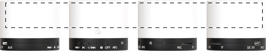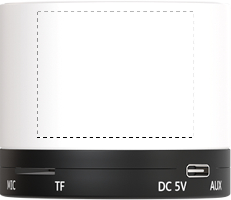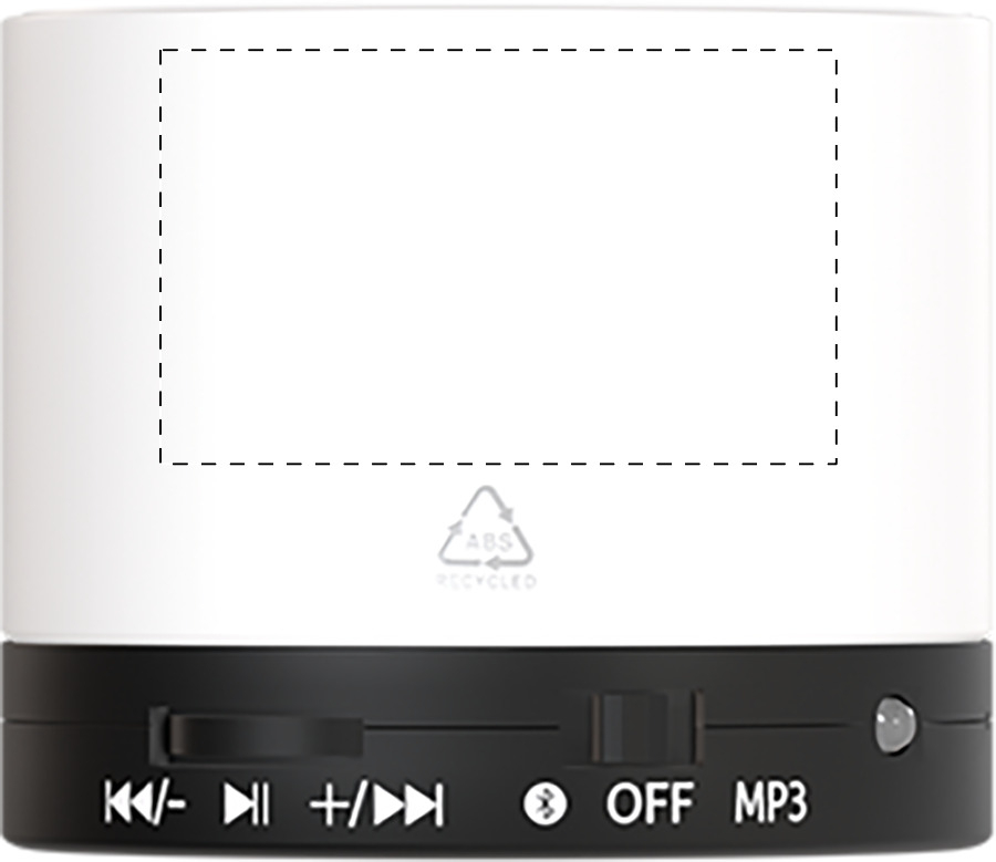 Cassa wireless in ABS riciclato con corpo gommato, rete metallica e batteria ricaricabile (300 mAh). Con funzione di chiamata in vivavoce e riproduzione di MP3 su micro SD. Cavo di ricarica USB incluso.