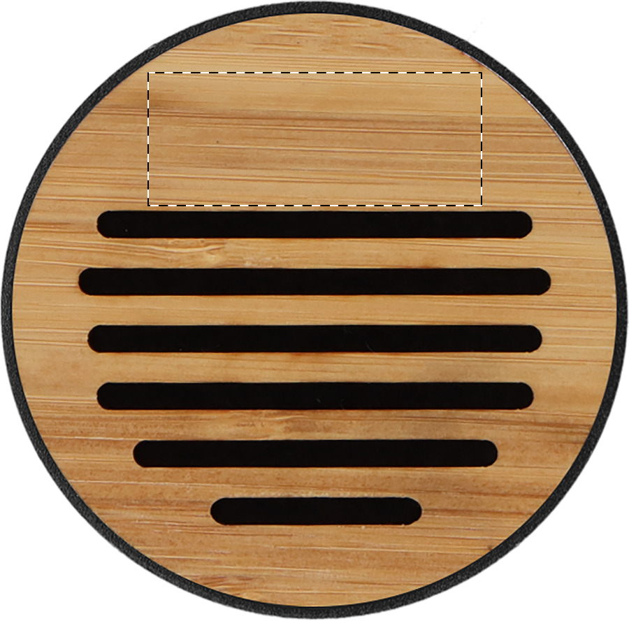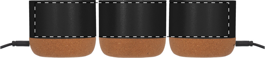 Cassa wireless in alluminio riciclato con copertura in bambù, base in sughero naturale e batteria ricaricabile (400 mAh). Cavo di ricarica USB incluso.