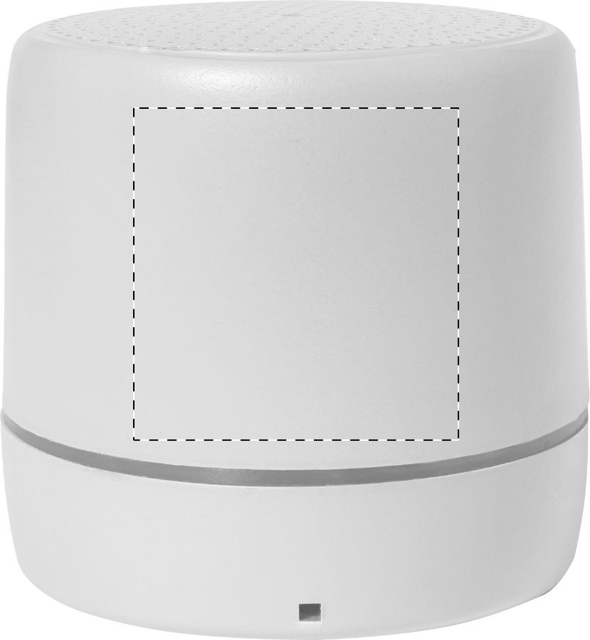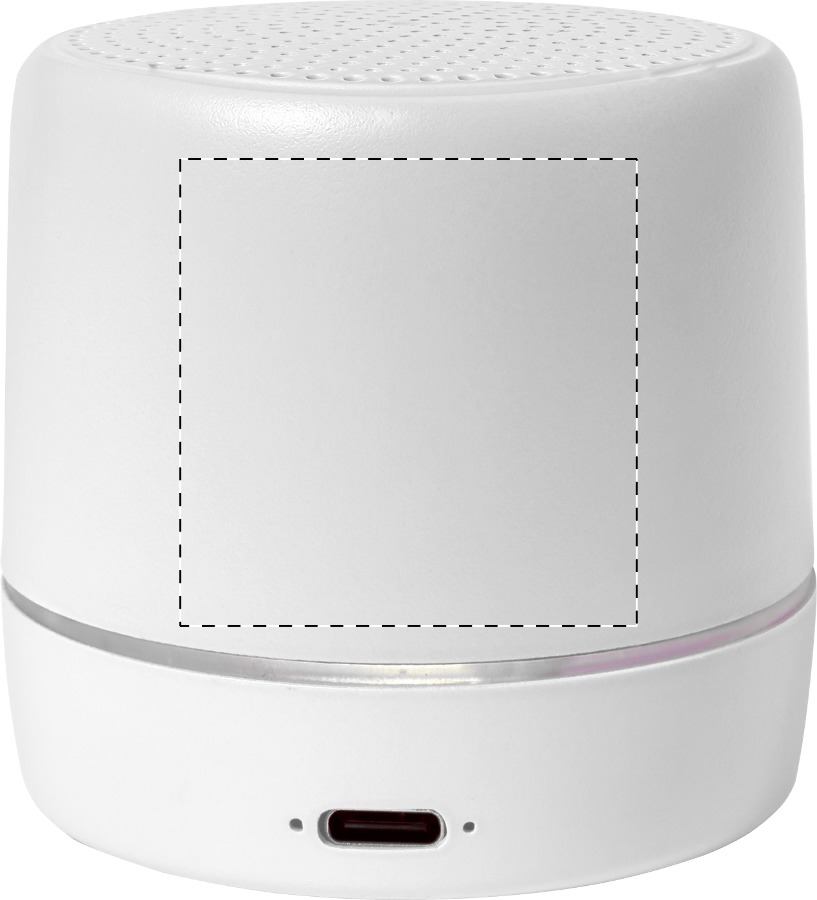 Altoparlante wireless con alloggiamento in plastica ABS, batteria ricaricabile integrata e luce LED all'interno dell'alloggiamento per incisioni illuminate. Incluso cavo di ricarica USB.
