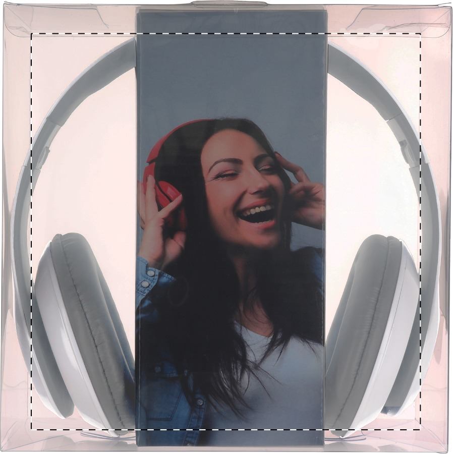 Cuffie wireless pieghevoli in plastica con batteria ricaricabile integrata. Con funzioni di chiamata in vivavoce e riproduzione di MP3 su micro SD. Cavi di ricarica USB e jack audio da 3,5 mm inclusi.