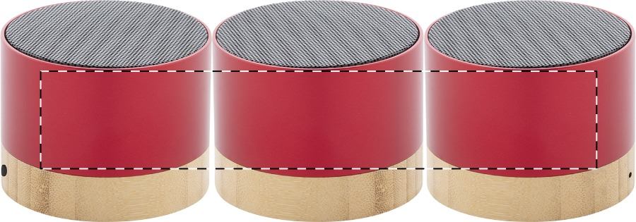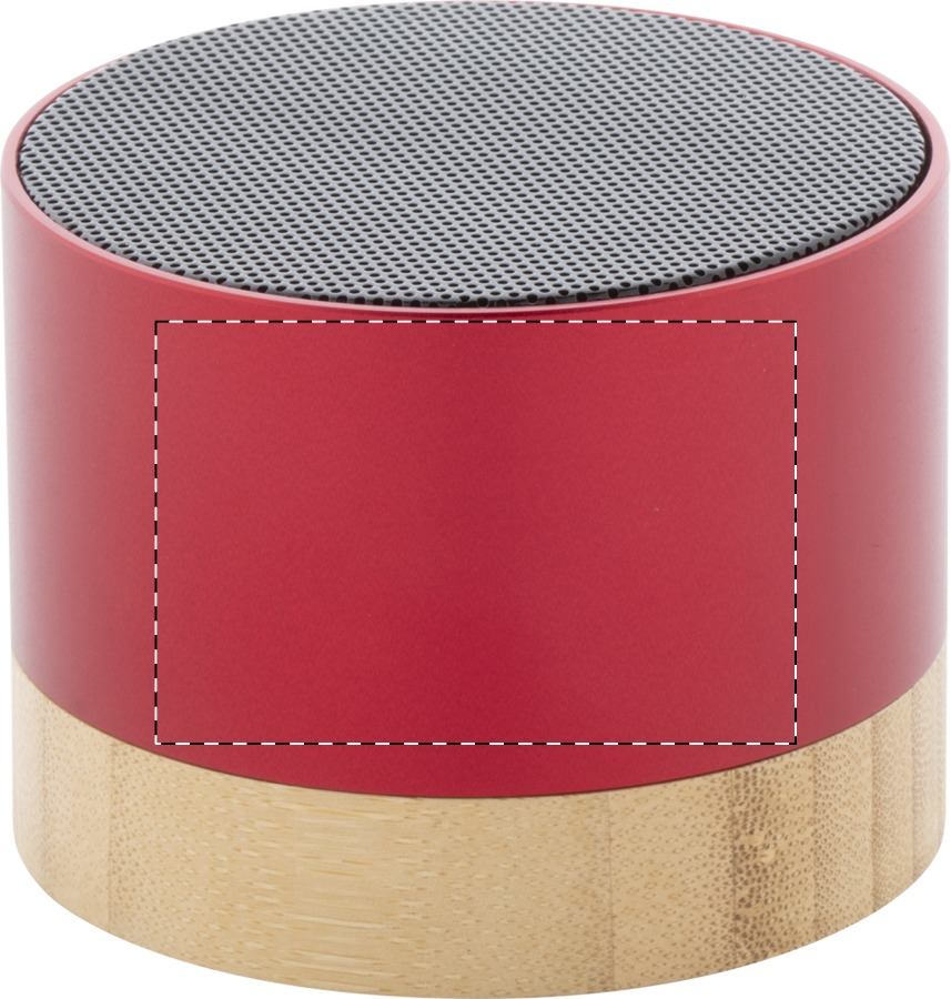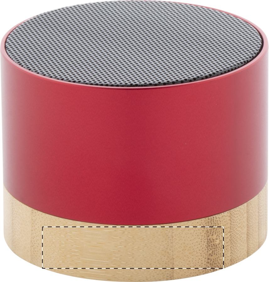 Cassa wireless in alluminio riciclato con base in bambù. Con funzione di chiamata in vivavoce e batteria ricaricabile integrata. Cavo di ricarica USB incluso.