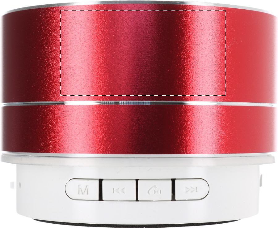 Altoparlante wireless con alloggiamento in alluminio. Con funzioni di chiamata in vivavoce, radio FM e lettore micro SD e batteria ricaricabile integrata. Incluso cavo di ricarica USB.