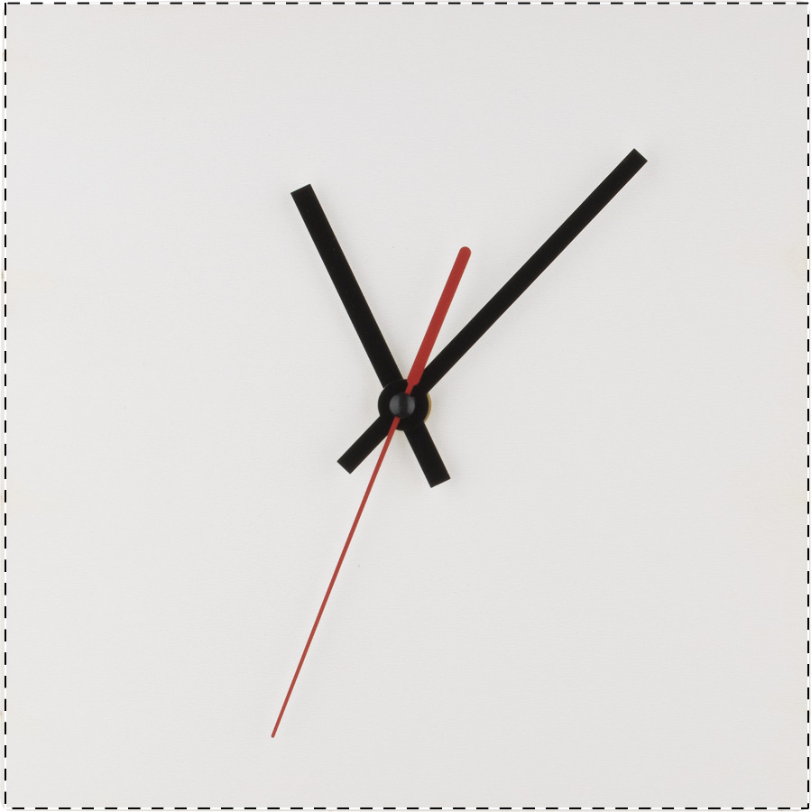 Orologio da parete di forma quadrata in legno HDF con grafica personalizzata. Funziona con 1 batteria AA, non fornita. MOQ: 50 pz.