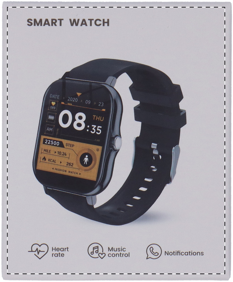 Smartwatch wireless multifunzionale con cassa in metallo, schermo touch screen TFT da 1,44", batteria ricaricabile da 150 mAh e cinturino in silicone. Dispone di diverse funzioni intelligenti e di monitoraggio della salute, come la frequenza cardiaca, la pressione sanguigna e il monitoraggio dell'ossigeno, oltre a molte altre. Può essere collegato agli smartphone con un'applicazione gratuita disponibile per iOS e Android. Include un cavo di ricarica USB. Resistente all'acqua IP65.
