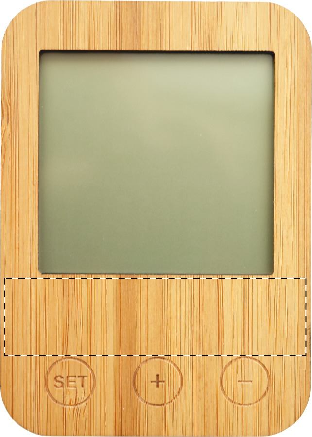 Orologio digitale in bambù e stazione meteo con display temperatura ed umidità. Funziona con 2 batterie AAA non fornite.