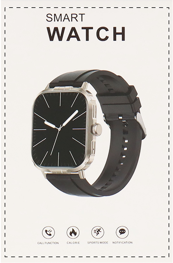 Smartwatch wireless multifunzionale con cassa in metallo, schermo touch screen TFT da 2,01", batteria ricaricabile da 210 mAh e cinturino in silicone. Dispone di diverse funzioni intelligenti e di monitoraggio della salute, come la frequenza cardiaca, la pressione sanguigna e il monitoraggio dell'ossigeno, oltre a molte altre. Può essere collegato agli smartphone con un'applicazione gratuita disponibile per iOS e Android. Include un cavo di ricarica USB magnetico. Resistente all'acqua IP65.