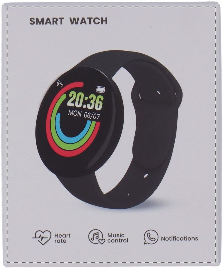 Smart watch wireless multifunzionale in plastica ABS con schermo TFT da 1,44", batteria ricaricabile da 180 mAh e cinturino in TPU. Dispone di diverse funzioni intelligenti e di monitoraggio della salute, come la frequenza cardiaca, la pressione sanguigna e il monitoraggio dell'ossigeno, oltre a molte altre. Può essere collegato agli smartphone con un'applicazione gratuita disponibile per iOS e Android. Resistente all'acqua IP65.