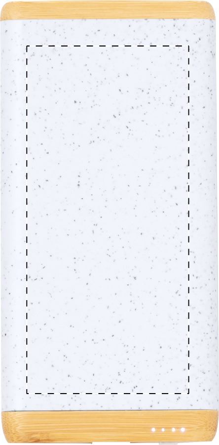 Power bank USB in bambù e plastica ecologica di paglia di grano con batteria da 5000 mAh, porta di ingresso USB-C, 1 porta di ricarica USB e 1 USB-C. Cavo di ricarica USB incluso.