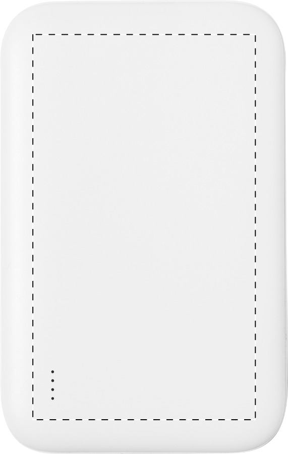 Power bank in plastica ABS riciclata con batteria da 5000 mAh, porta di ingresso USB-C, 2 porte di ricarica USB e 1 USB-C. Cavo di ricarica USB incluso.