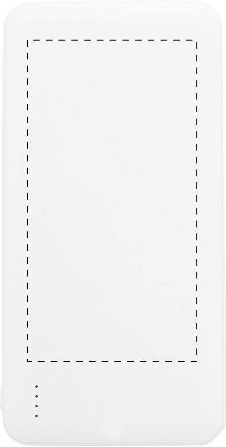 Power bank in plastica ABS riciclata con batteria da 10000 mAh. Con 2 porte di ricarica USB e 1 USB-C e porte di ingresso micro USB e USB-C. Cavo di ricarica USB incluso.