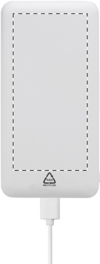 Power bank in ABS riciclato con batteria da 20000 mAh.,2 porte di ricarica USB e 1 USB-C e porte di ingresso micro USB e USB-C. Cavo di ricarica USB incluso.