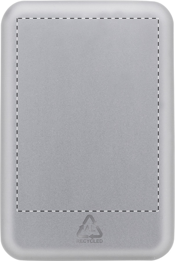 Power bank in alluminio riciclato con struttura semitrasparente e componenti elettronici a vista. Batteria da 5000 mAh e caricatore rapido wireless magnetico integrato (15 W), ingresso e porta di ricarica USB-C. Viene compreso un anello metallico autoadesivo che consente di utilizzare la funzione magnetica su qualsiasi dispositivo ricaricabile in modalità wireless. Compatibile con iPhone® 12 o più recente. Cavo di ricarica USB incluso.