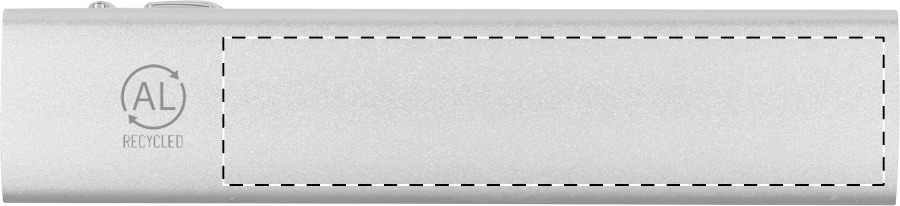 Power bank in alluminio riciclato con batteria da 2600 mAh., con 1 porta di ricarica USB e 1 USB-C e porta di ingresso USB-C. Cavo di ricarica USB incluso.