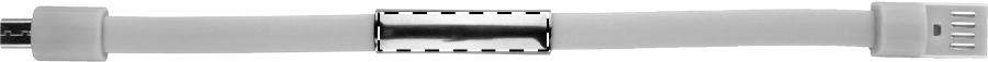 Braccialetto in gomma con cavo di ricarica micro USB e piastra in alluminio.