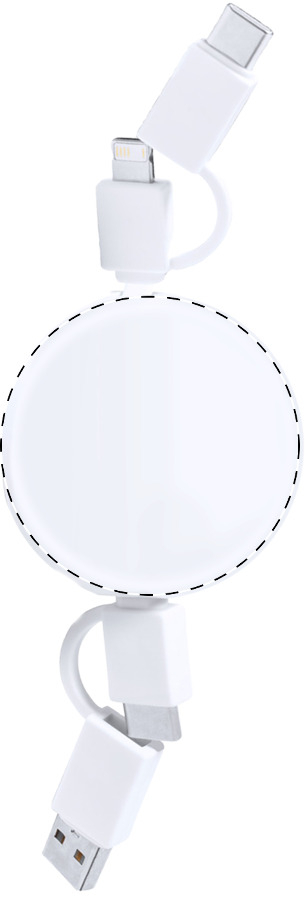 Cavo telescopico di ricarica USB in plastica ABS con connettori micro USB, USB-C e Lightning. Con ingressi USB e USB-C.
